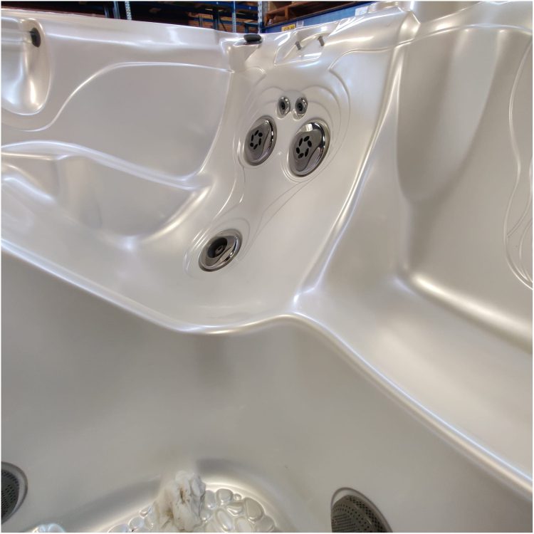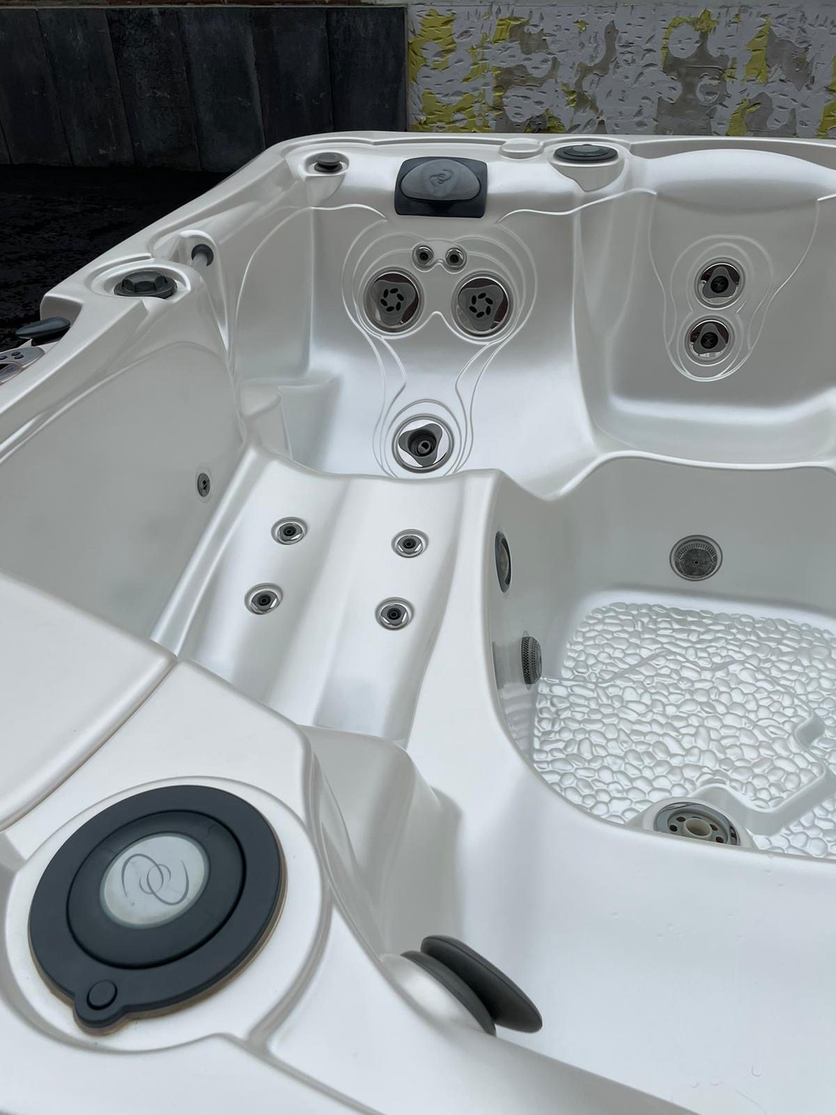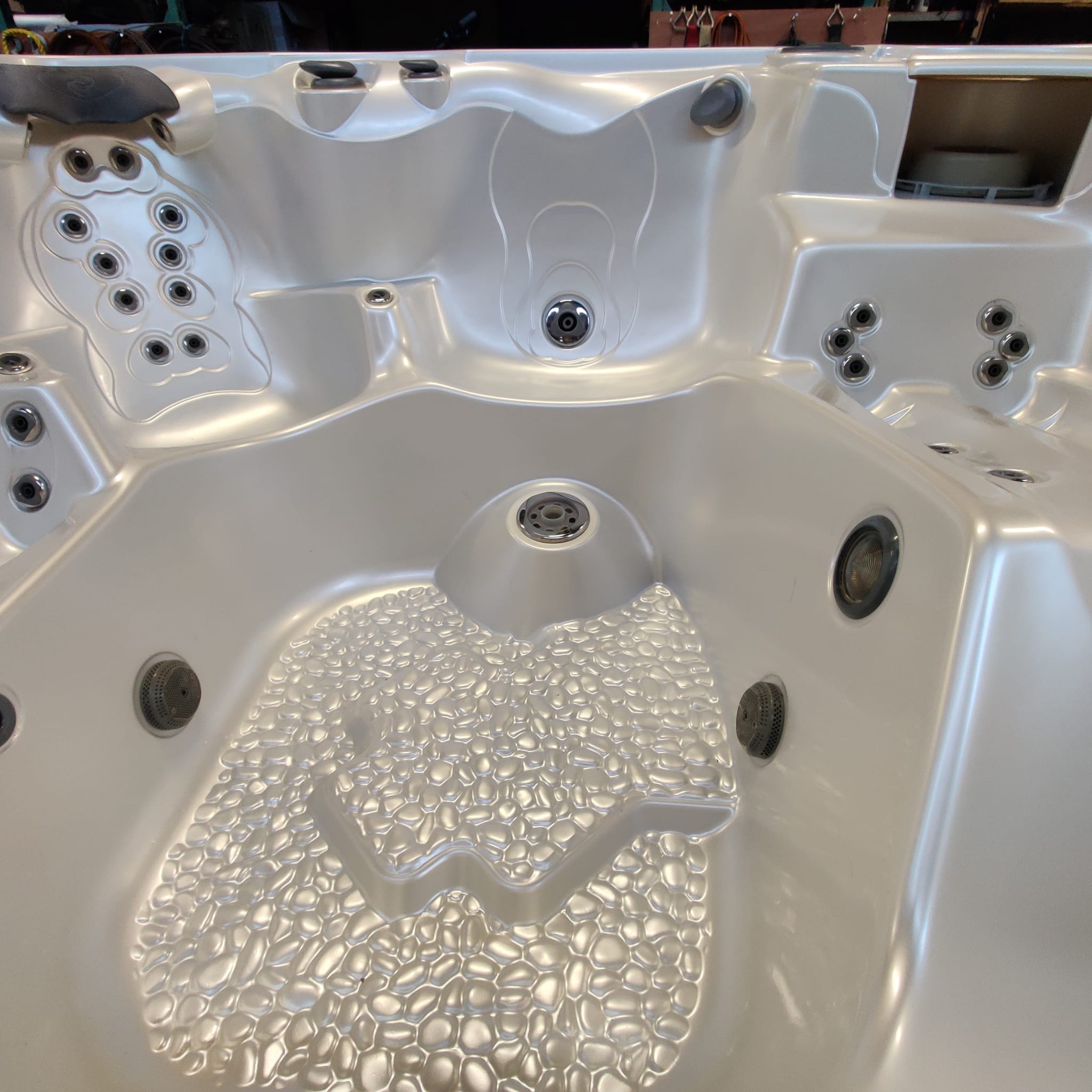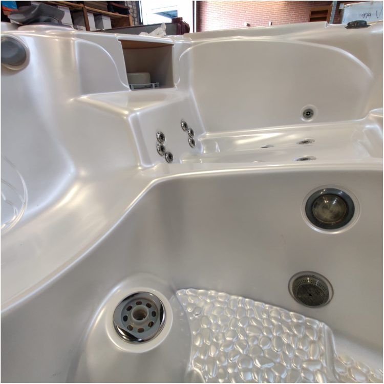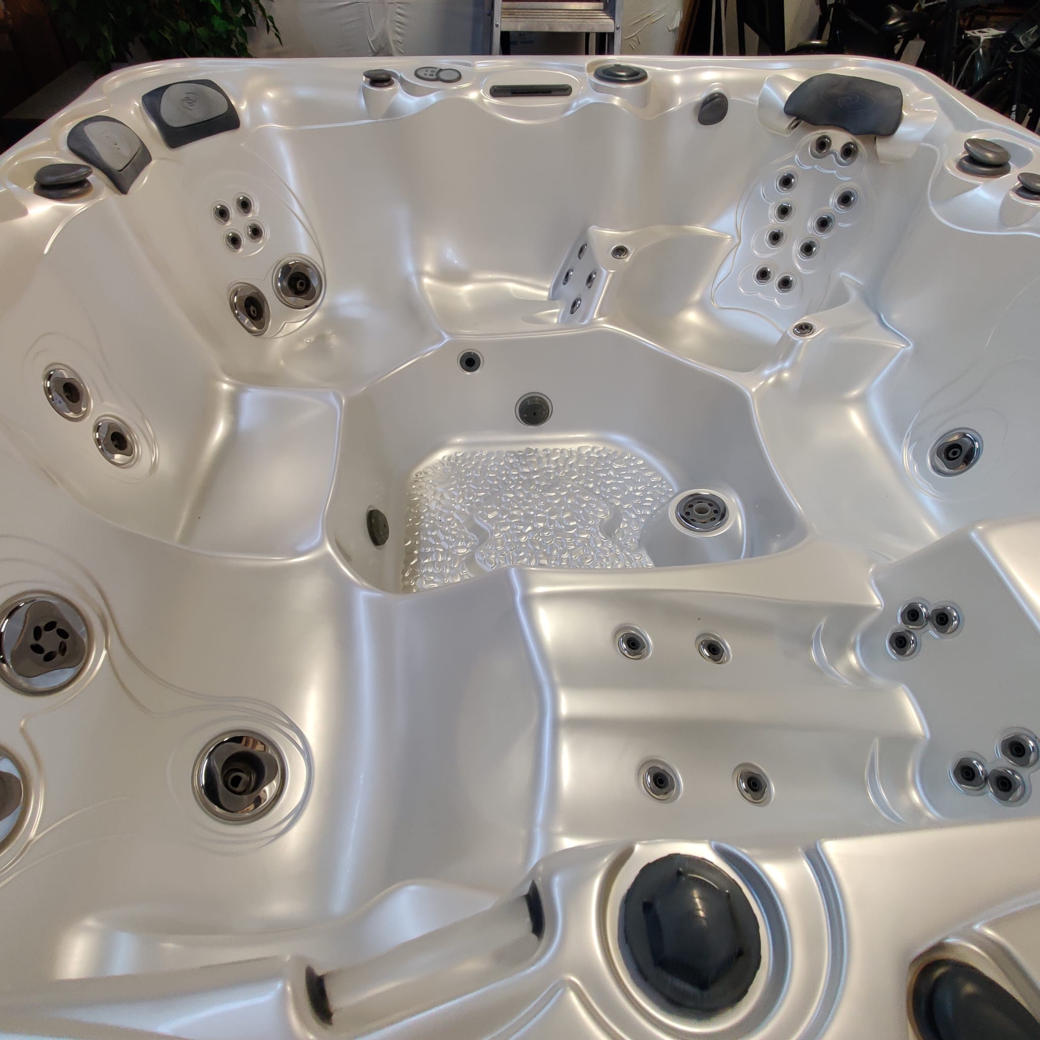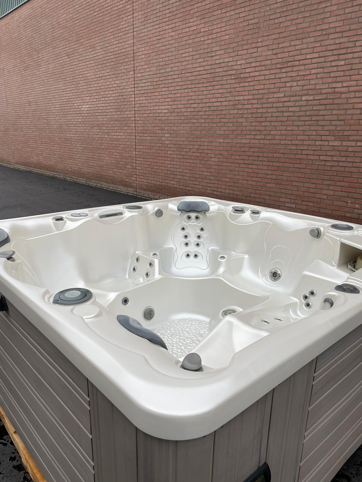 Deze prachtige Caldera Spa Elation uit 2012. Een van de unieke modellen binnen de Caldera line-up met een wisselpositie tussen lounger en zetel.