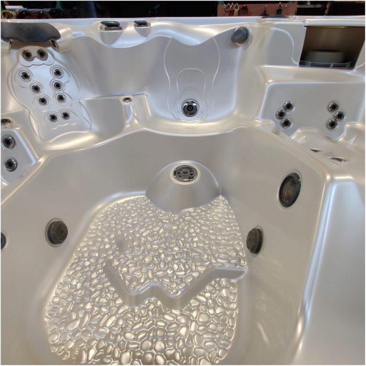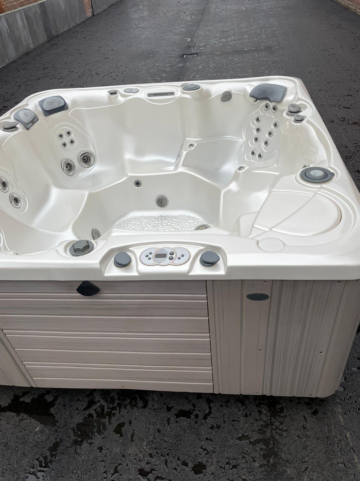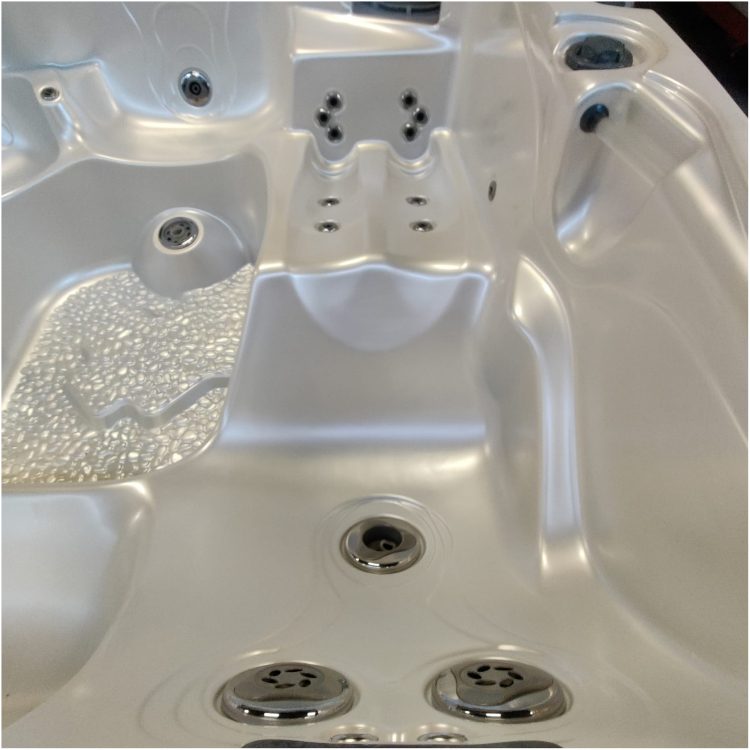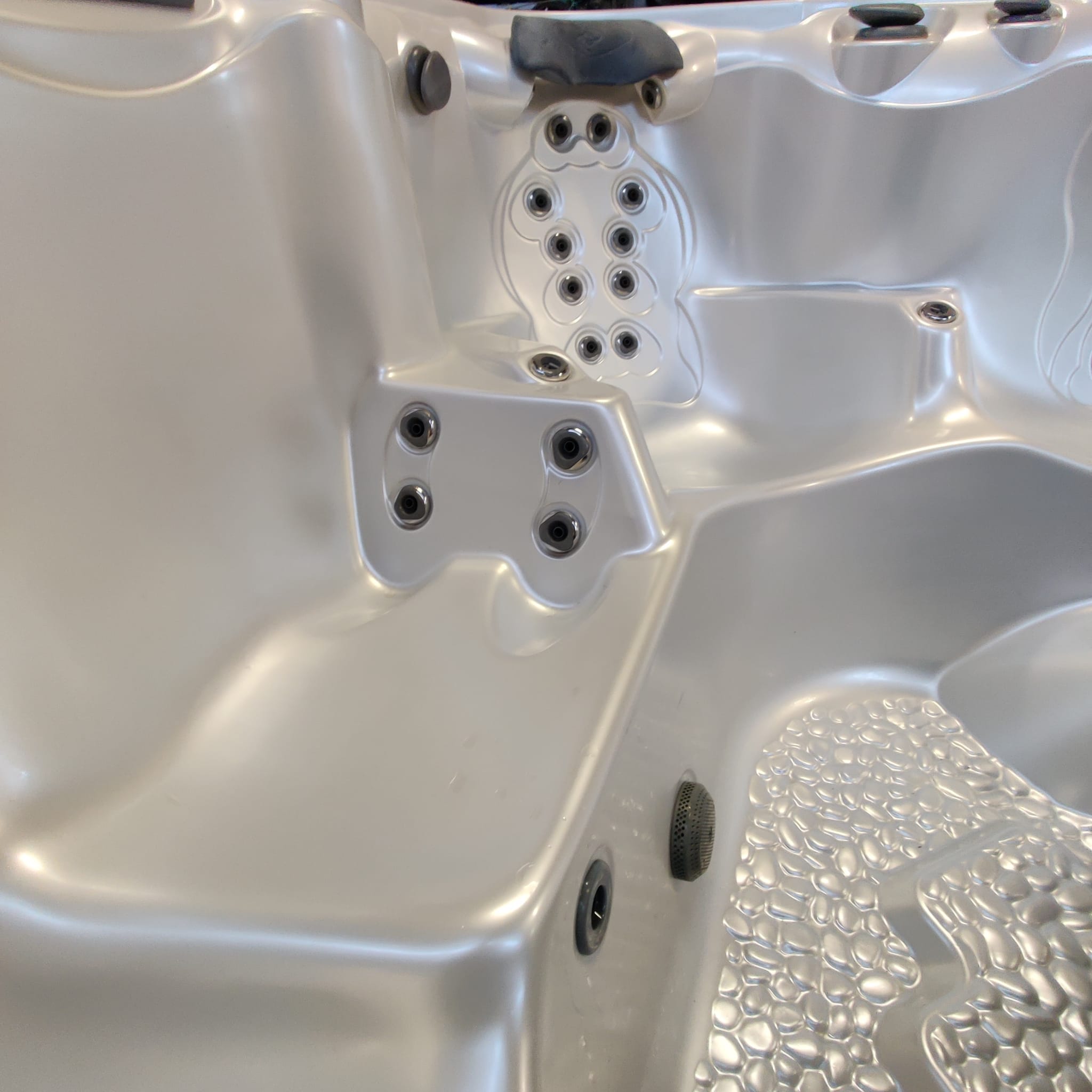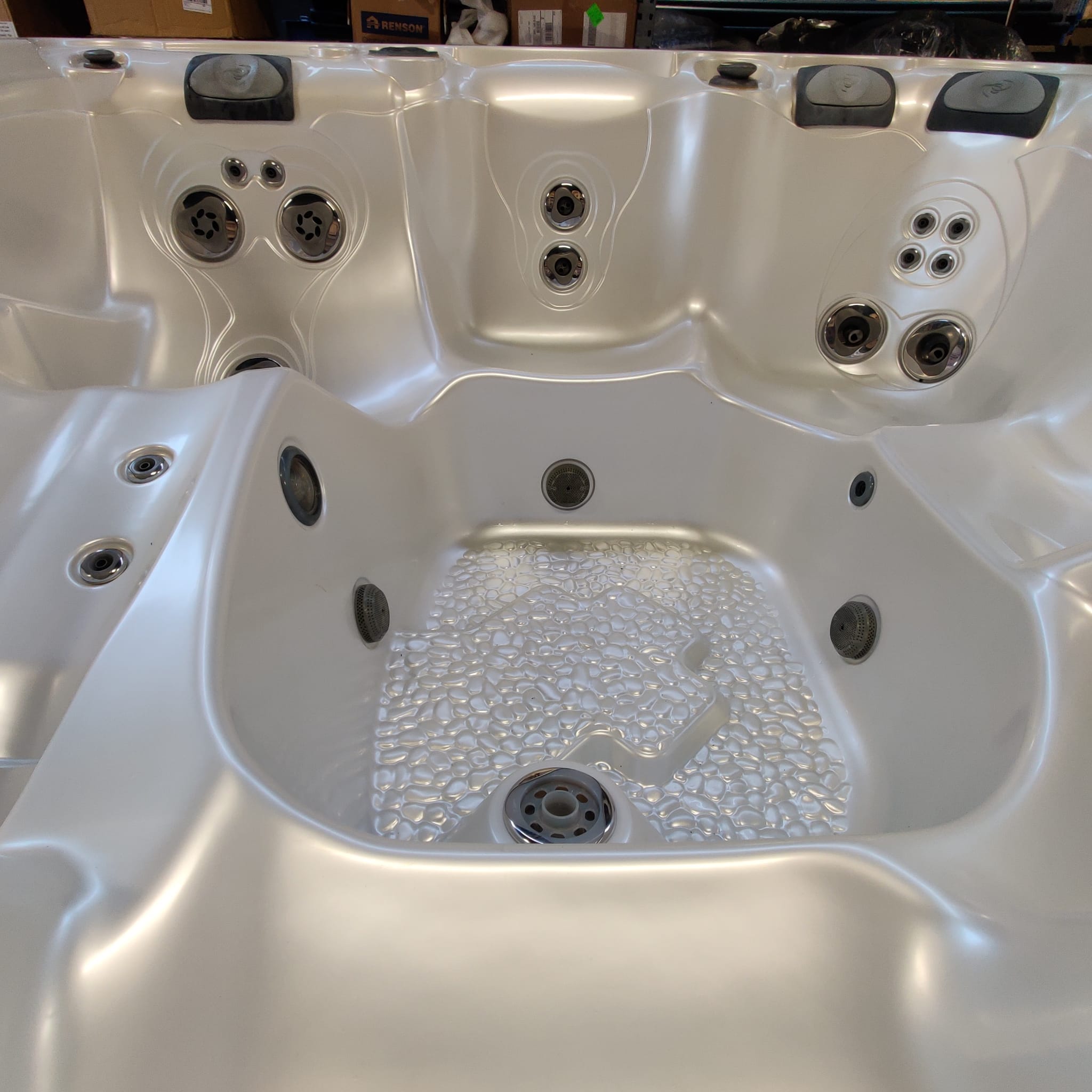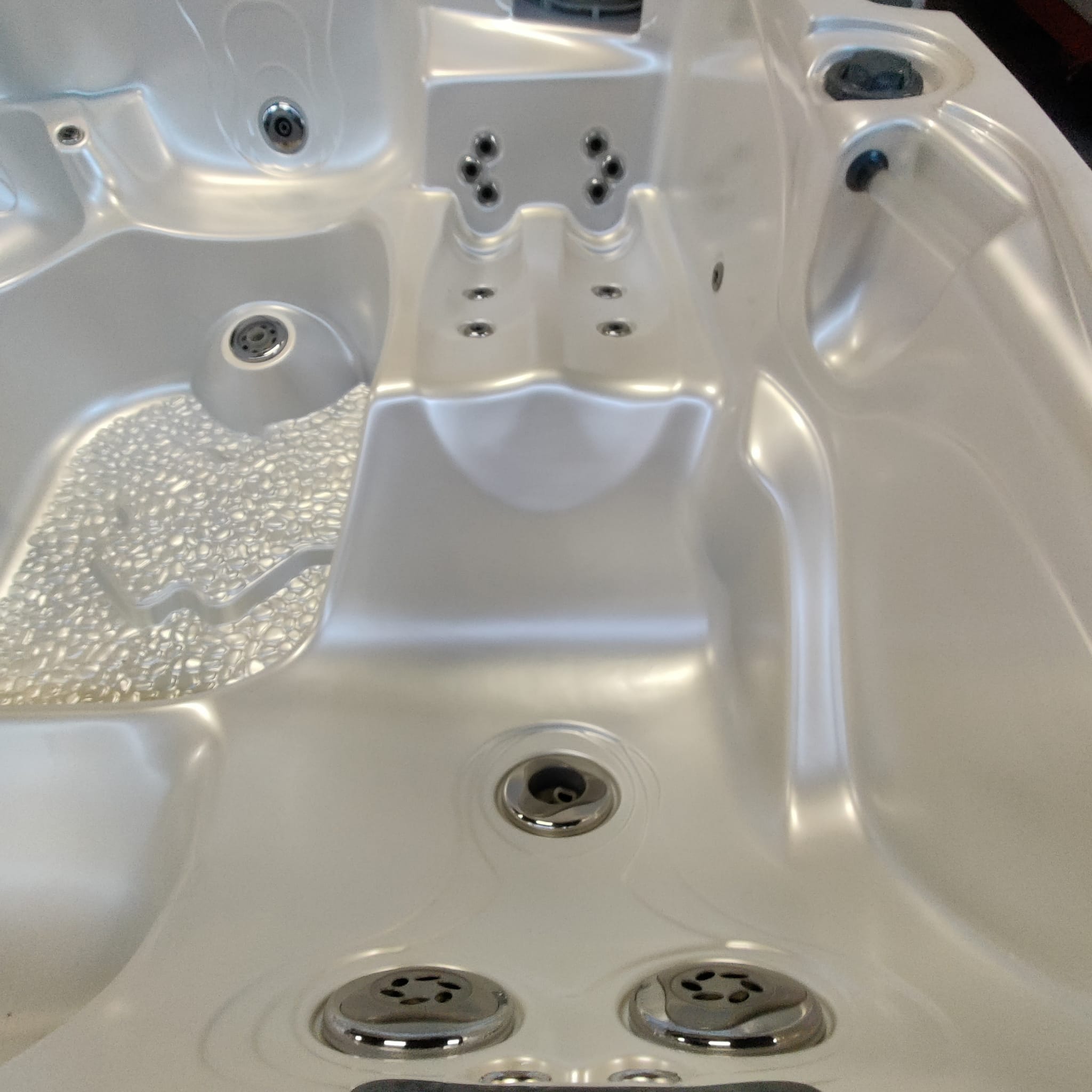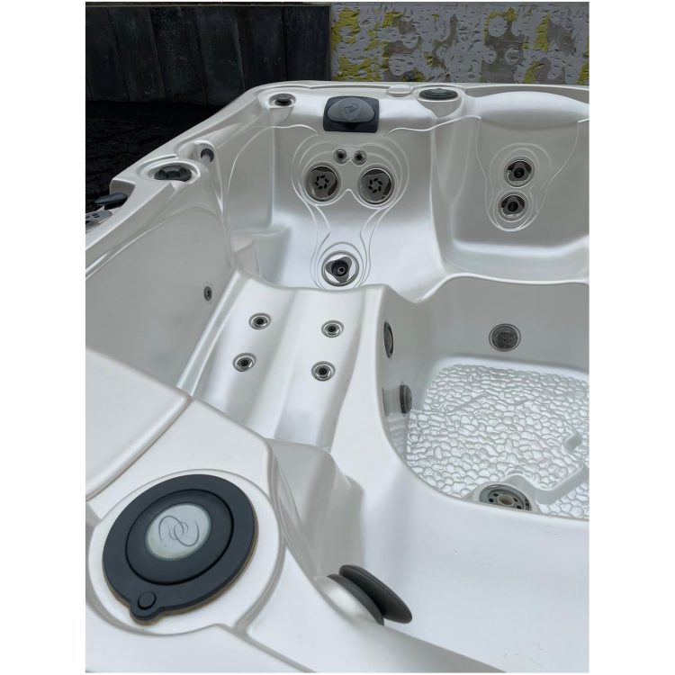 Deze prachtige Caldera Spa Elation uit 2012. Een van de unieke modellen binnen de Caldera line-up met een wisselpositie tussen lounger en zetel.