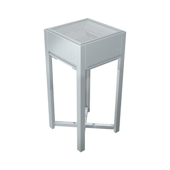De Glow is de houtskoolbarbecue van oneQ. De Glow kan geplaatst worden in het eigen onderstel (de Leg) van oneQ, maar kan ook eenvoudig ingebouwd worden in uw buitenkeuken of barbecuetafel.