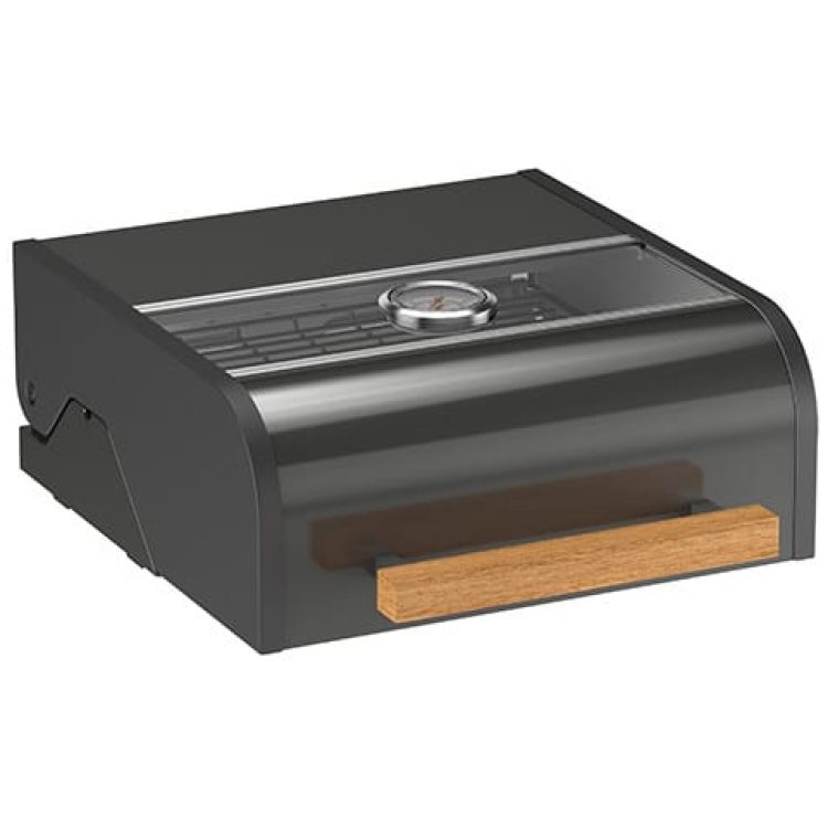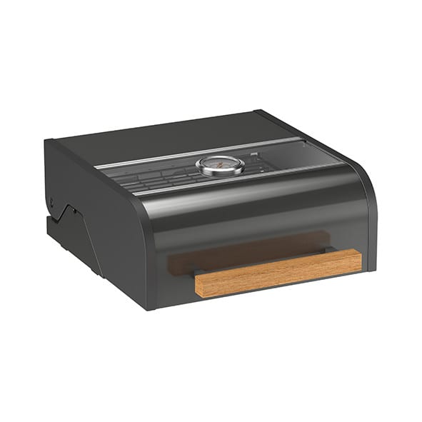 Wilt u koken met deksel op uw Flame of Glow? Dan kan met de Roasting Hood, voorzien van een houten handvat, luxe thermometer en glazen deel in de deksel. De deksel wordt aan de Legs gemonteerd. De daarvoor benodigde aangepaste zijpanelen worden meegeleverd.