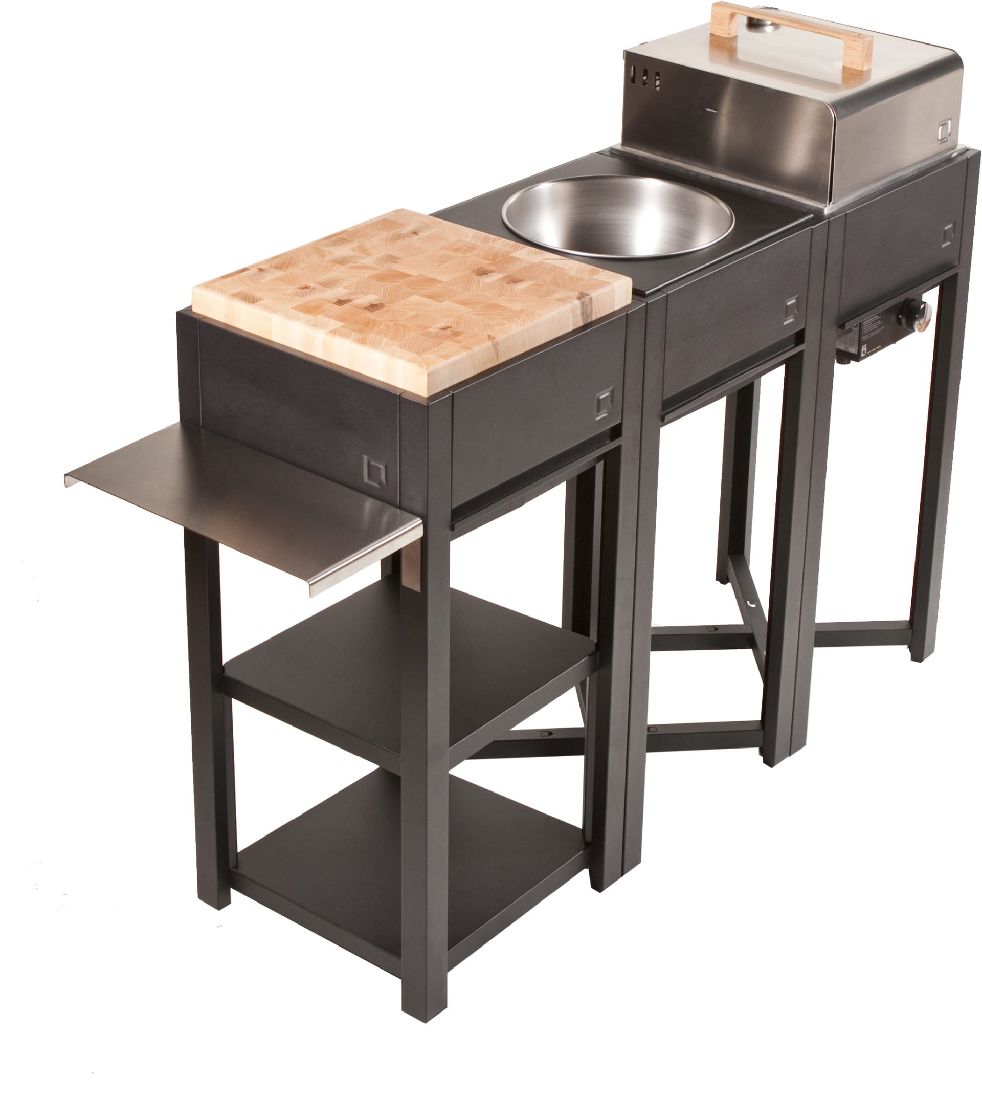 Aan iedere Leg kunt u een eigen functie toekennen, zoals een gasbarbecue (Flame), een houtskoolbarbecue (Glow), een snijplank van kunststof (Table) of hout (Bamboo), een wijnkoeler (Ice) of een spoelbakje met kraan (Wet). Uiteraard zijn ook diverse accessoires voor verschillende kooktechnieken, extra werkruimte en bescherming van uw buitenkeuken beschikbaar.